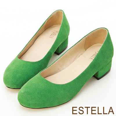 ESTELLA☆愛麗絲狂想→全真皮質感時尚低跟鞋(綠)