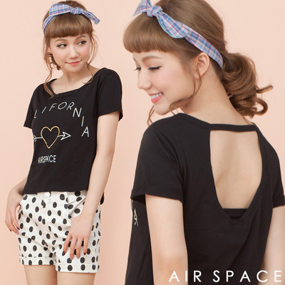 AIR SPACE 愛心射箭字母背鏤空短版上衣(個性黑)