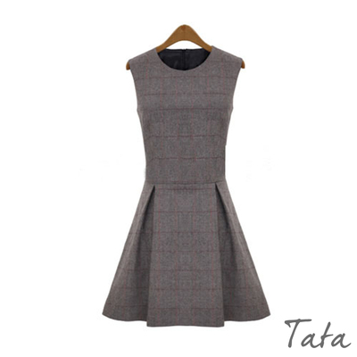 復古格子圓領修身無袖洋裝 TATA商品網址: