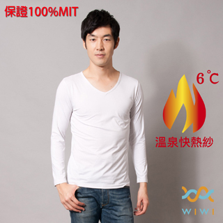 【WIWI】保證100?T樂活刷毛V領發熱衣(純淨白 男M-XL)
