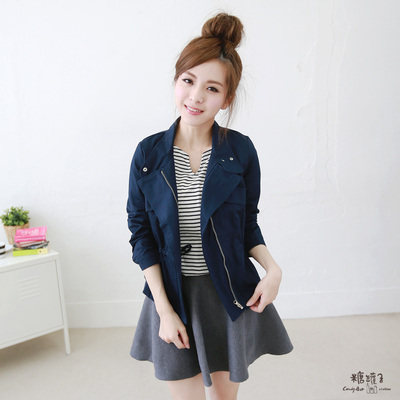 糖罐子-車線假口袋拉鍊短版外套