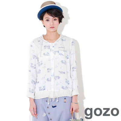 • gozo撞色印花連帽襯衫