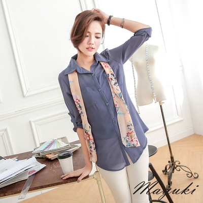 東京著衣-MAYUKI 渲染花絲巾+雪紡襯衫-S.M(共三色)-4000625