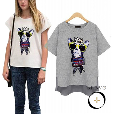 設計師圖案印花拼接下擺寬鬆版T恤 共二色 Bravo
