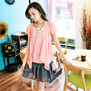 【I-Sweety中大碼】0338甜美氣息條紋假兩件洋裝(兩色)商品網址: http://www.momoshop.com.tw/goods/GoodsDetail.jsp?i_code=261797...