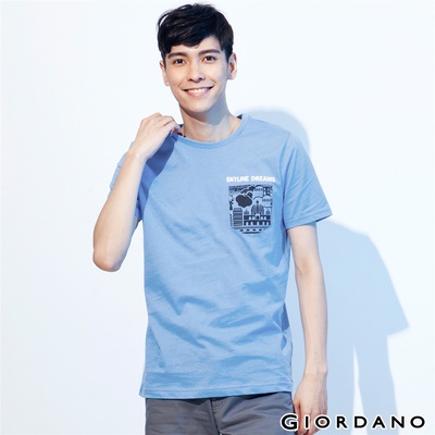 GIORDANO 男裝天際線口袋印花TEE-51湛藍