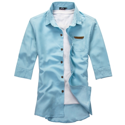 | 商品名稱:潮男必備,皮標口袋素面七分袖襯衫(八色)