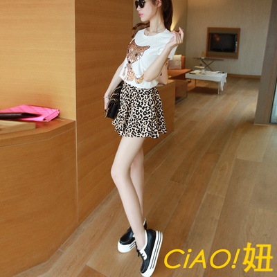 視覺立體豹紋圖案短褲裙 (豹紋)-CiAO妞