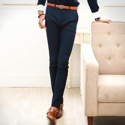 L'AME CHIC韓國高質感正宗商務後小折彈性萊卡合身顯瘦窄管休閒褲