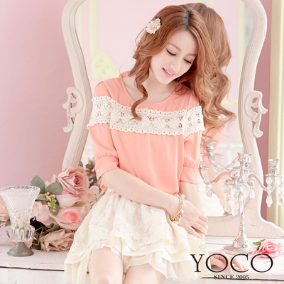 東京著衣-YOCO 蕾絲拼接公主袖上衣(共三色)