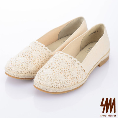 SM-臺灣製-蕾絲拼接帆布麻編底休閒便鞋-米白