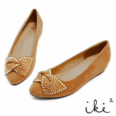 iki2甜美氛圍-絨質亮點點蝴蝶結內增高娃娃鞋-名媛咖