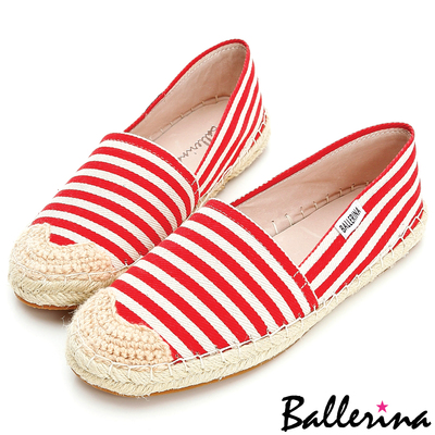 Ballerina-軟Q夏遊款.繽紛條紋帆布麻繩編織鞋-紅