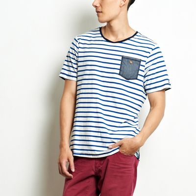 本季男裝介於工作和休閒的Casual Smart Look,猶如半正式的兩顆釦西裝外套搭配窄管水洗單寧褲,內搭Y字領帶釦長袖棉衫,遊走於輕鬆與正式邊緣,呈現義大利男性不羈的一面,讓整體造型休閒舒適卻不失義大利經典優雅。