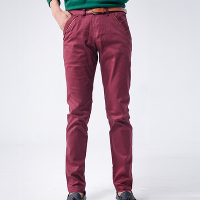 皮革拼接口袋合身褲(附皮帶)-紅