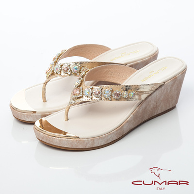 CUMAR漫步雲端。夾腳彩色寶石前端金屬涼鞋-金色