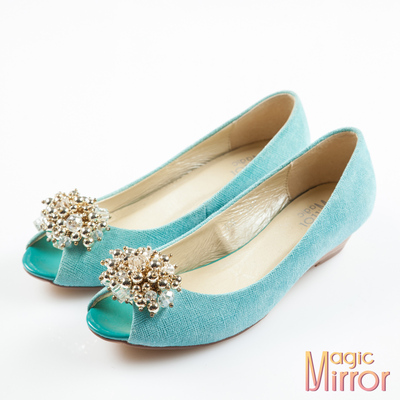 Magic mirror 法式浪漫風~美感珠鑽串花露指楔型鞋 ~ 童話藍