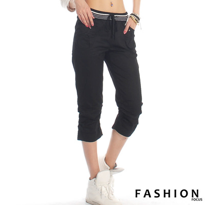 羅紋綁袋七分休閒褲共2色-Fashion Focus