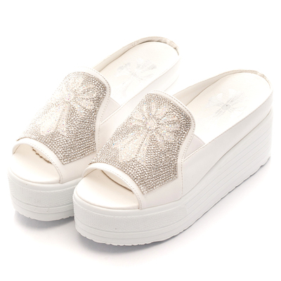 Entifa 夏日璀璨彩鑽厚底涼鞋-白