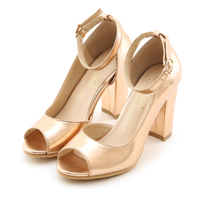 D+AF 經典世代?素面側挖空粗跟魚口涼鞋*香檳金