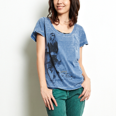 GARCIA 人物暈染大圓領口袋T恤(藍)