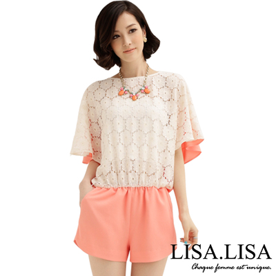 LISA.LISA 蕾絲雕花背後鏤空開衩連身褲