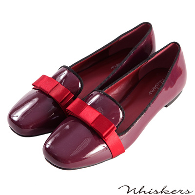 Whiskers 輕恬紳士 漆皮緞面朵結樂福鞋*酒紅