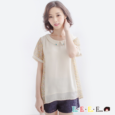 FFFF 公主領雪紡小碎花拼接上衣 ( 共兩色)
