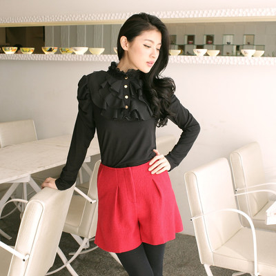 【瑞典H&M】時尚玩美素面百搭毛褲-復古紅
