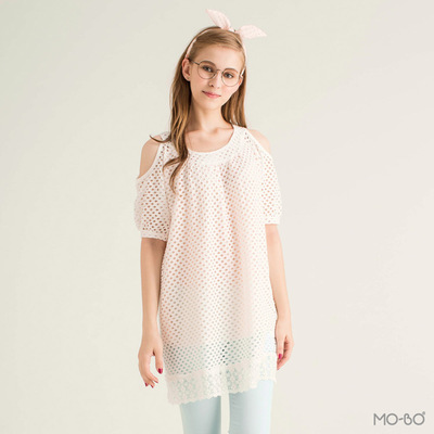 MO-BO MIT 鏤空挖肩拼接長上衣(共兩色)