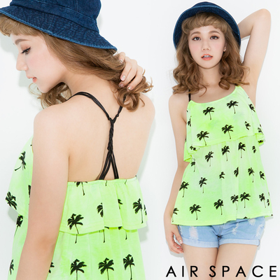 AIR SPACE 亮彩椰子樹露背細肩棉質上衣(螢光黃)