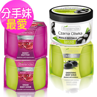 BIELENDA?碧爾蘭達】 紅石榴精華嫩白去角質霜 200g/入 1入+【BIELENDA?碧爾蘭達 】 紅石榴精華嫩白身體乳 200g/入 1入+【BIELENDA?碧爾蘭達】 黑橄欖精華緊緻去角質霜 200g/入 1入+【BIELENDA?碧爾蘭達】 黑橄欖精華緊緻身體乳 200g/入 1入
