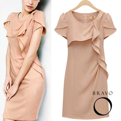 荷葉層次裝飾花苞袖雪紡洋裝 共二色 Bravo商品網址: