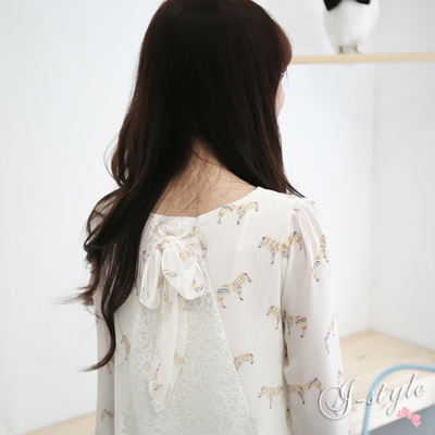 粉蠟筆斑馬背後蕾絲綁帶雪紡衫-I-sTyLe