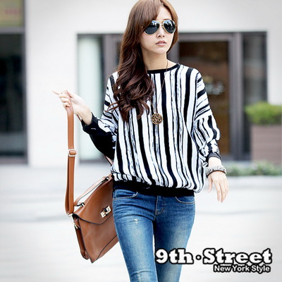 【9th.Street】風靡主打‧條紋塗鴉雙面上衣