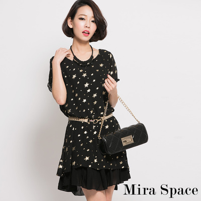 洋裝-來自星星的雪紡拼接星星洋裝-Mira Space