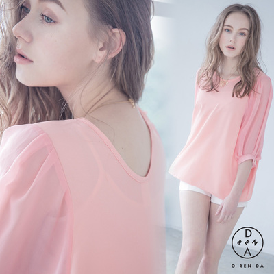 ORENDA-氣球袖極簡美感雪紡上衣-粉色