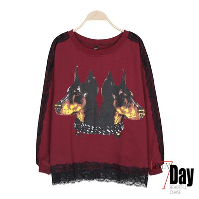 BAD GIRL獵犬印花蕾絲鑲邊圓領棉T上衣(共四色)-7day商品網址: https://tw.partner.buy.yahoo.com:443/gd/buy?mcode=MV92TVFFTzVW...