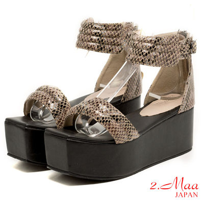 2.Maa 歐美時尚設計二層蛇紋牛皮休閒涼鞋-咖啡