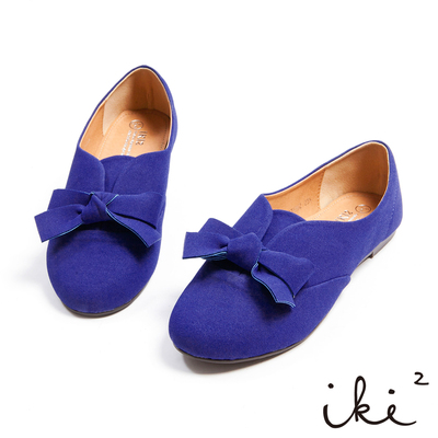 iki2復古佳人-人氣百搭立體蝴蝶可愛牛津鞋-學院藍