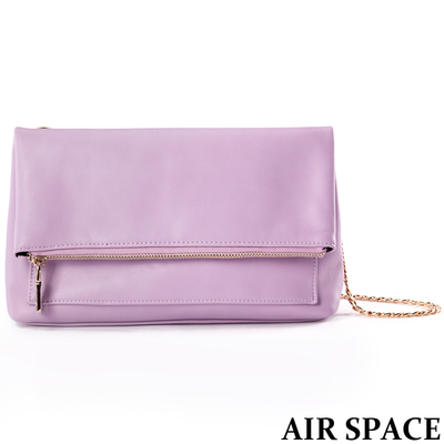 AIR SPACE★隨興有型~光澤感羊紋反摺方形鏈帶側肩包-紫