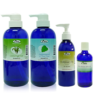 - 內容物:e’bio檸檬草洗髮精500ml+茶樹&薄荷洗髮精500ml+頭皮SPA放鬆精華露30ml加贈檸檬&絲柏滋養潤絲精200ml(油性髮質)