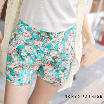 東京著衣 蕾絲綴口袋花朵排扣短褲(共四色)