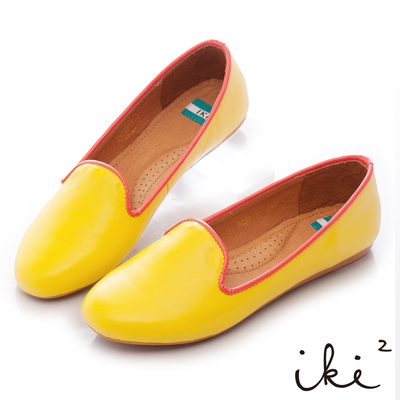 iki2甜漾漫步-繽紛百搭真皮樂福鞋-黃