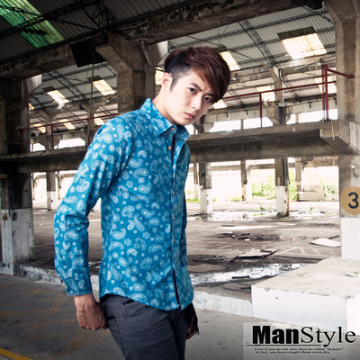 ManStyle潮流嚴選變形蟲圖騰印花海軍釦修身丹寧襯衫-共三色商品網址: