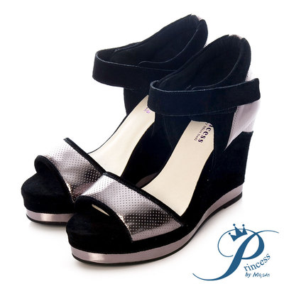 Princess - 前衛金屬質感運動楔型涼鞋-前衛黑商品網址: