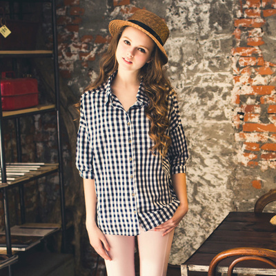 精選日系棉質格紋襯衫