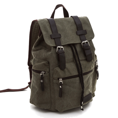 【A.J.亞介包】皮革雙磁釦設計水洗帆布後背包(綠色)