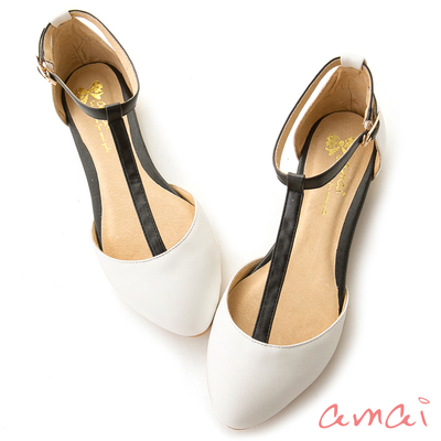 amai T字繫帶尖頭涼鞋 撞色平底側空-牛奶白