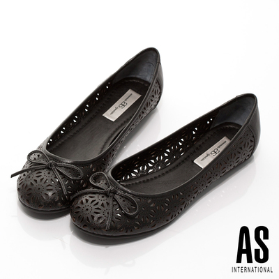 AS 精緻雕花蝴蝶結娃娃鞋-經典黑